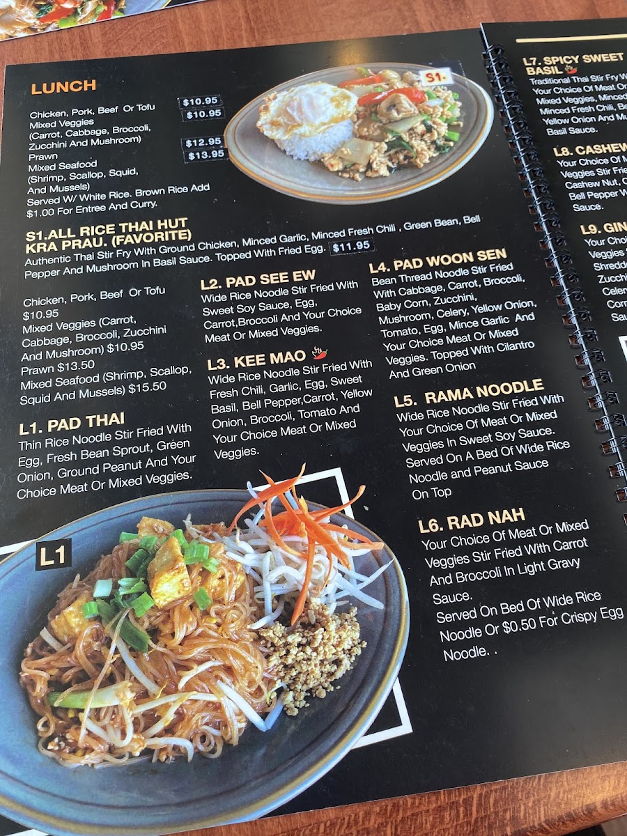 All Rice Thai Hut Menu
